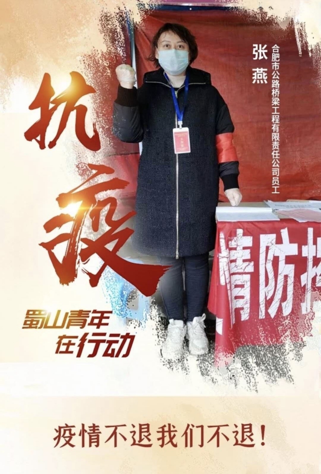 首頁 > 新聞中心 > 詳細(xì)新聞張燕,是合肥市公路橋梁工程有限責(zé)任公司一位普通職員,我和諸多心系疫情的朋友一樣,想用自己的一份熾熱的心去做點(diǎn)什么,于是我在蜀山團(tuán)區(qū)委報名,志愿在防疫一線的工作崗位上付出我所有。