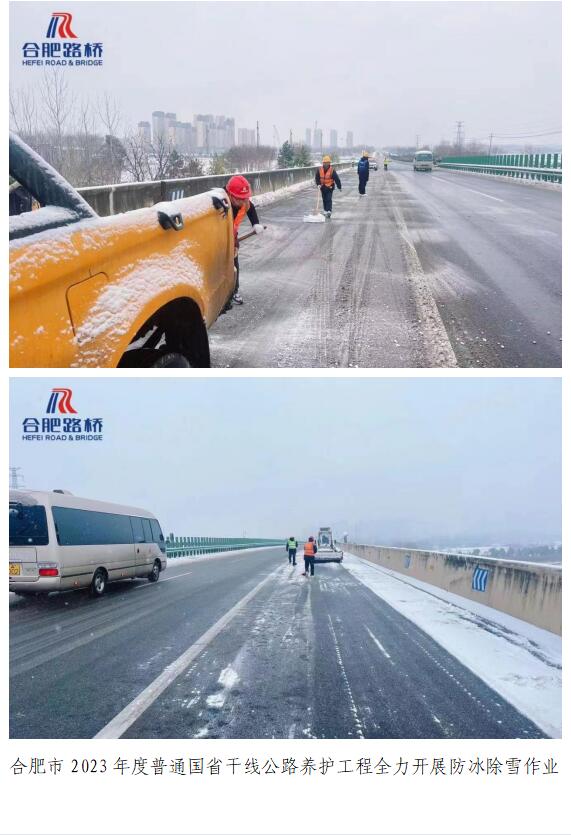 據(jù)合肥市氣象預(yù)報(bào)寒潮來(lái)襲,為保障國(guó)省干線公路安全暢通,公司在建項(xiàng)目合肥市2023年度普通國(guó)省干線公路養(yǎng)護(hù)工程(第二批一標(biāo)段)項(xiàng)目經(jīng)理部迅速組建極端天氣應(yīng)急小組,加強(qiáng)一線人員、物資、機(jī)械調(diào)度,全力開(kāi)展防冰除雪作業(yè)。18日,經(jīng)過(guò)一天的奮戰(zhàn),項(xiàng)目養(yǎng)護(hù)路段主干道、橋梁、急彎陡坡、臨水臨崖等路段積雪全部清除完畢。